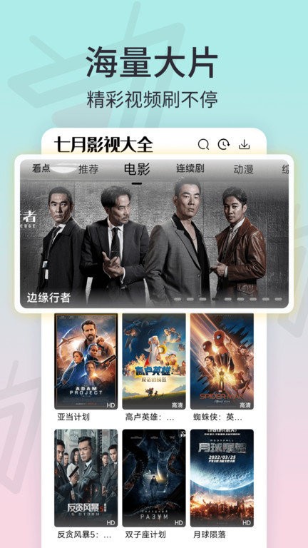 七月影视大全app是一款可以根据不同风格去寻找影视的一款影视软件,其中的影视资源超级多,能够帮助你轻松寻找到很多好看的视频等着你来挑选观看,很多热播好剧都是可以全网聚合第一时间观看的哦,并且还为用户提供了短视频的功能,可以去观看,一起来看看吧。
