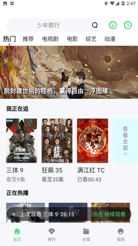 51影视大全app是一款打破单一观影场景限制的全功能视听平台,涵盖电影、电视剧、动漫、纪录片等全品类,海内外热门剧集每日同步更新,经典老片与小众佳作一键检索。独创场景化播放引擎,通勤模式自动切换省流画质,睡前护眼模式智能调暗屏幕,家庭投影模式优化画面比例,适配不同使用场景的核心需求。搭配上百套备用播放线路与自适应码率技术,弱网环境也能流畅播放,蓝光、4K 超清画质自由选择。