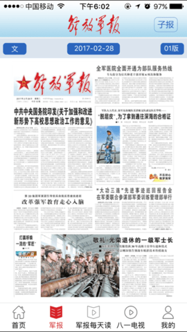 设置了“独”“锐”“深”“忆”四个版块,同时向您展示当日解放军报的全部内容;