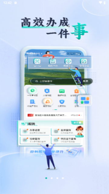 支付、社保、公积金、订阅信息快捷查询,集合电子证件、个人办事事项。