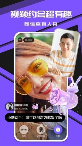 人工智能小糖助手帮找趣味话题,打破陌生人尴尬社交,随时都知道聊什么交友更简单,还有超多美颜、滤镜让交友更自信有趣
