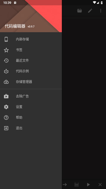 CodeEditor这是一款免费的代码编辑优化的工具,这是针对安卓设备去优化使用的哦,整体功能超级强大好用,还有内部存储、书签、最近文件、代码示例、存储管理器、去除广告以及设置的功能可以点击使用,方便我们在手机中就可以随时去对代码程序进行编辑了。