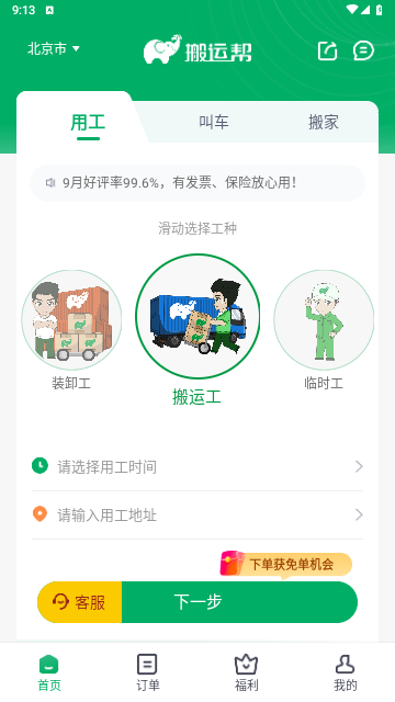 用工更省力,全国各地20万工人随叫随到,搬运工、装卸工、搬家工、临时工、拆装工、清洁工均可实时下单,就近为您服务!