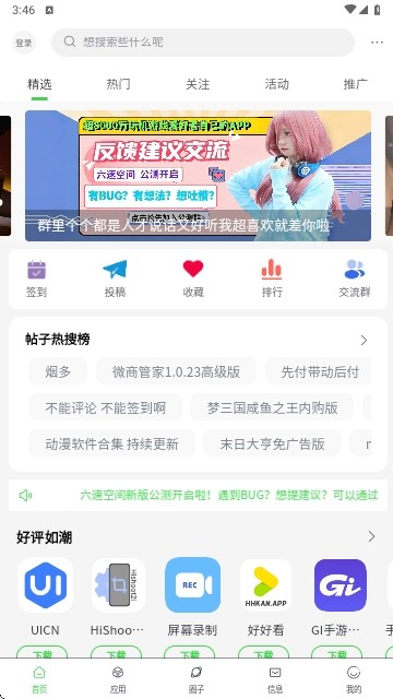 六速空间app为大家提供了很多好用的应用软件资源等着我们去免费下载,几乎所有的应用都是可以在其中寻找到,无论是破解应用还是影视软件又或者其他类型的应用都是可以直接去使用的哦,为我们整合了超多免费的应用资源可以挑选下载,可以快速找到不同目标的模板,里面应用分类超级全面,根据需求去寻找吧。