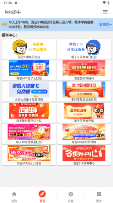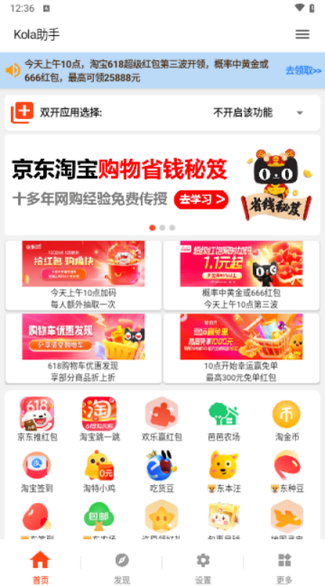 kola助手app这是一款购物的辅助工具,能够帮助我们在购物的时候去对全网的平台进行比价,并且还有很多购物的活动等着我们去参加,方便我们在618或者双十一的大型购物活动去使用,能够轻松完成各种各样的购物任务,能够节省我们时间与精力的购物工具,可以自动识别并去完成我们自定义完成的购物任务。