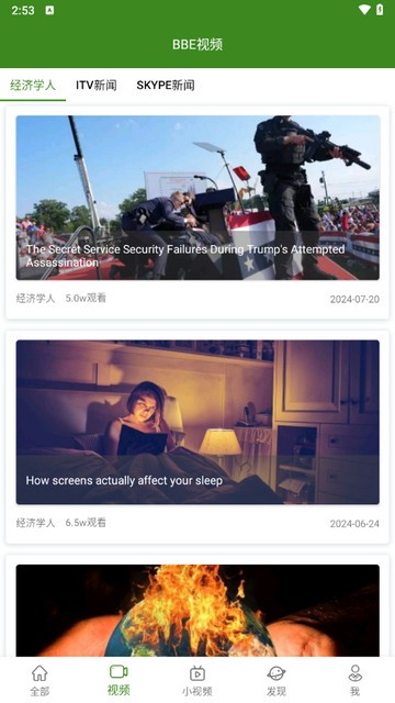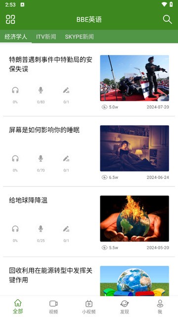 进入视频页面中观看各种精彩的视频学习英语内容。