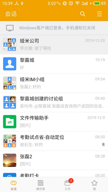 企业通讯录,不用自己添加好友就能找到本企业任意一位同事的联系方式。