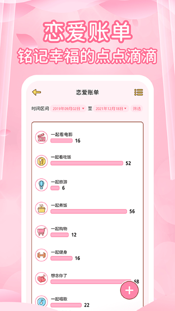 恋爱记录:用图片和文字共同记录每一天的恋爱时光;