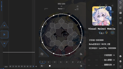 visual Maimai Mobile这是一款很好用的音乐游戏的制谱的工具,能够自定去对游戏关卡进行创作的游戏,无需深度代码就可以轻松使用了,里面自带了强大的功能可以选择使用,整体操作十分简单且好用,适合不同类型的用户去使用,无论是新手还是有经验的制作者都是可以来这里去制作。