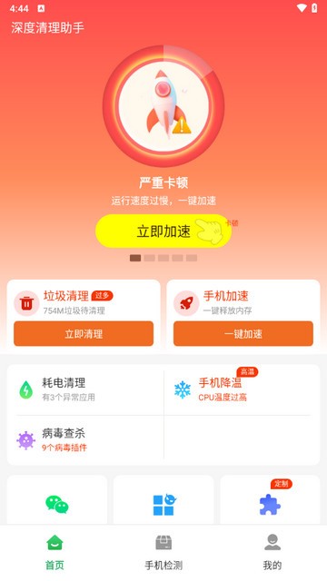 内存加速――毫秒级响应加速,彻底解决手机卡慢问题;