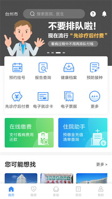 健康台州app这是针对台州本地居民而准备的医疗健康服务软件,提供了多种医疗服务的需求,无论是查看检查报告还是挂号都是不错的选择,能够避免我们线下挂号的繁琐流程,可以让我们用户快速查询报告和缴费,还有在线取号、排队叫号、体检报告查询的功能,很多名院专家等着我们去挂号。
