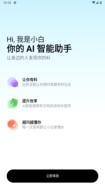 问小白app是一款免费的手机ai智能语音助手,可以帮助我们完成日常生活中所有的学习与工作的需求,还有很多推荐的内容带给我们去浏览查看,也是深度学习以及个性化推荐的好帮手,免费的ai语音助手,很多人信赖的ai工具,内置了gpt4以及豆包ai可以去免费使用,提升效率的免费ai。