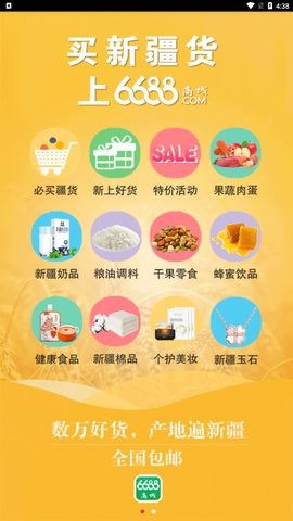 6688商城app是一款免费的手机商城平台,在平台上面有很多产品可以去查看使用,几乎所有的产品都是最低的价格可以查看,还有新上好货、特价活动、果蔬肉蛋以及新疆奶品可以去查看,很多资源都是能够搜索到并去下单的哦,还是一个智能化的购物软件,能够高效率的完成app购物的需求。