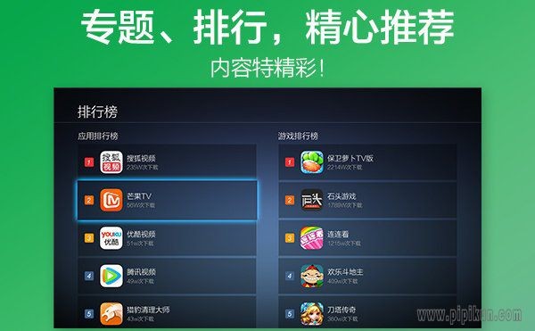游戏宝库外,还与当贝市场应用商店合作,提供超过数百款电视应用,一键下载安装。