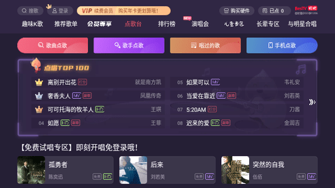 新歌即时更新,丰富的点歌推荐内容和热点活动内容,轻松找到喜欢的歌曲。