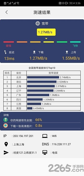 测速历史一目了然,轻松查阅,点击后查看当前测速的测速报告