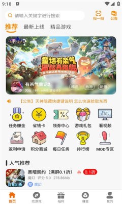 夜猫互娱游戏盒子app是一款免费的手机游戏盒子软件,在上面有很多好玩的游戏资源等着你来体验哦,无论是什么样的游戏都是可以轻松寻找到,赶紧来看看上面都有哪些你所爱玩的游戏等着你来下载吧,并且还有返利申请、积分商城、每日任务、排行榜、mod专区、看视频、游戏礼包、省钱卡等等频道可以选择。