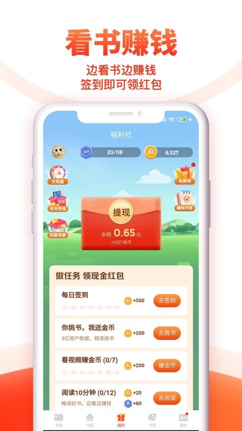 通过丰富有趣的福利任务赚取金币,金币可快速提现!