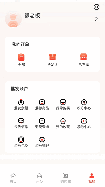 云蚂蚁app这是针对线下批发准备的手机app,我们只需打开软件就可以看到批发余额、推荐商品、常购买、积分中心、公告信息、退货查询、我的收藏、领券中心等等可以去查看,还提供了十分专业的售后的服务,方便我们在上面去随时随地去退换货,可以保障用户对于商品批发的体验,只需下单就可以享受快速配送的服务。