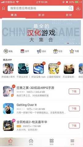 即可进入编辑推荐、热门游戏、热门软件分类。用户按照之前找资源的习惯很快上手,很容易找到一些优秀的软件资源