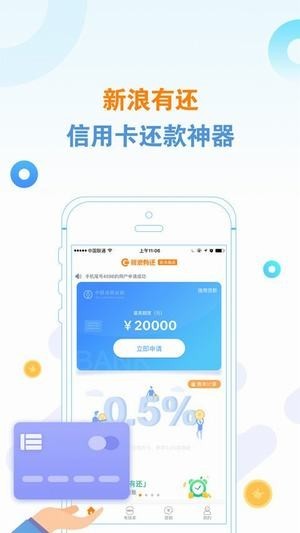 新浪有还app是一款在手机中就可以轻松快速借款的平台,这个平台是提供了很多借款方式等着我们去借款体验,并且额度高、审核快速、放款也快,利息也低,还可以轻松代还信用卡,只需几步就可以轻松完成审核的需求,并且费率也是一目了然的哦,可以享受不一样的生活,这也是很多人都在使用的信用卡还款神器。
