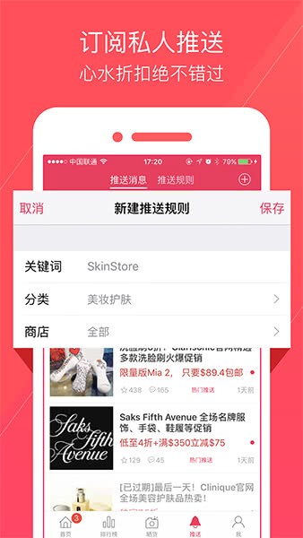 所感兴趣的产品及品牌进行折扣推送订阅,不错过任何好折扣。
