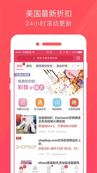 不间断播报美国热门折扣信息,百万用户,上千五星好评。