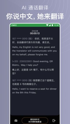英文通话时,可进行中文翻译对照,做你的助理翻译官
