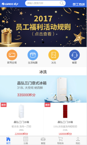 积分兑换功能,员工可以通过购物积累积分并兑换礼品。
